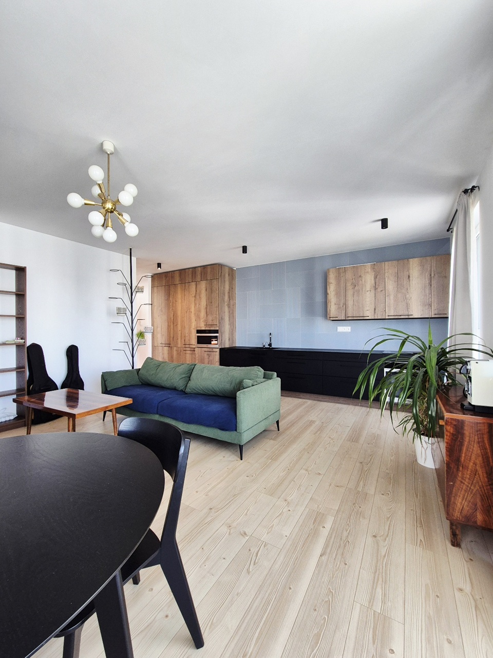 *obývacia miestnosť, spojená s kuchyňou a s miestom pre stolovanie